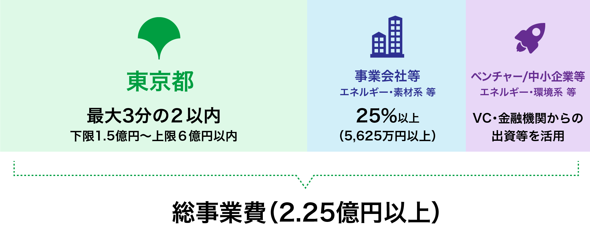 脱炭素事業等に取り組む都内のエネルギー/環境系ベンチャー・中小企業は特有の課題(多額の研究開発費用・長期間にわたる実証・ステークホルダーの確保等)を有しています。