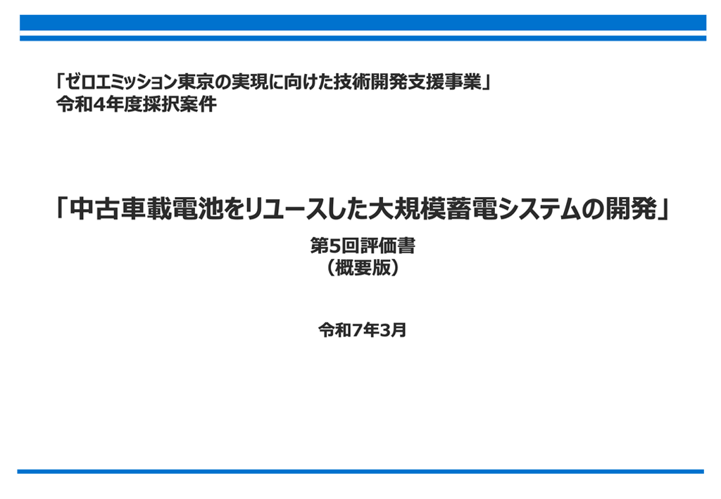 再生可能エネルギーの導入量拡大に伴い電力系統の効率的な利用を実現するには、安価な定置用蓄電システムの普及が必要である。本事業では、2030年以降大量に寿命を迎えるEVの中古車載電池をリユースし、大規模な蓄電システム(MW規模)を安価に構築する技術を開発する。本事業実施後には、更なるスケールアップを進め、主として系統用蓄電池向けに蓄電システムを販売・提供する事業を展開する。